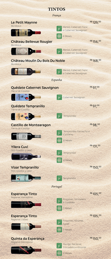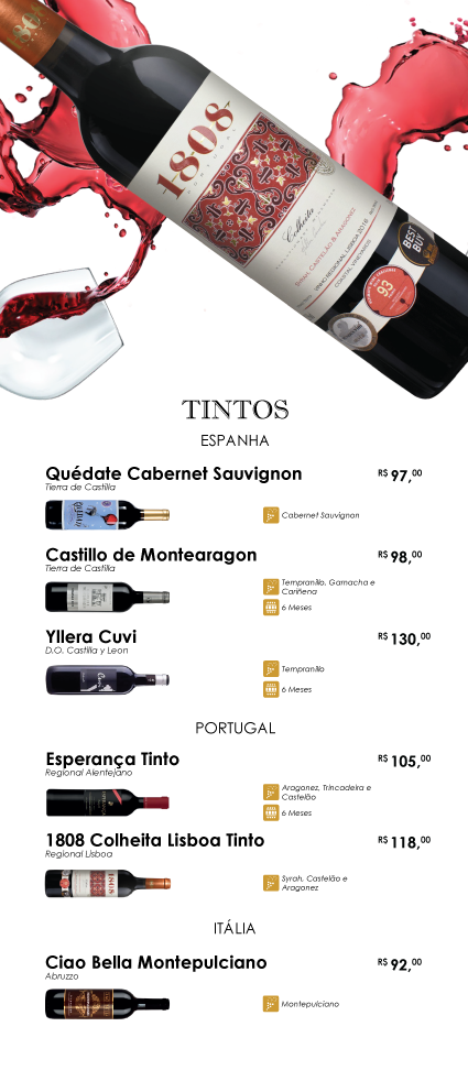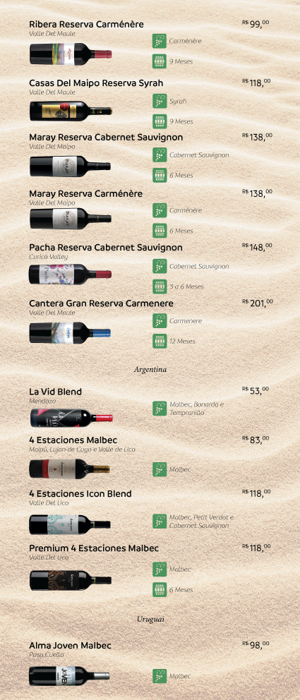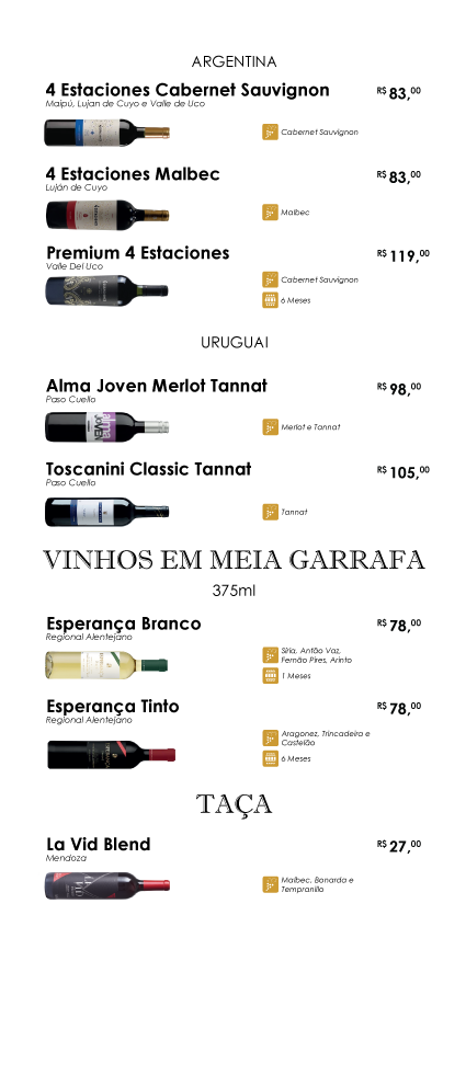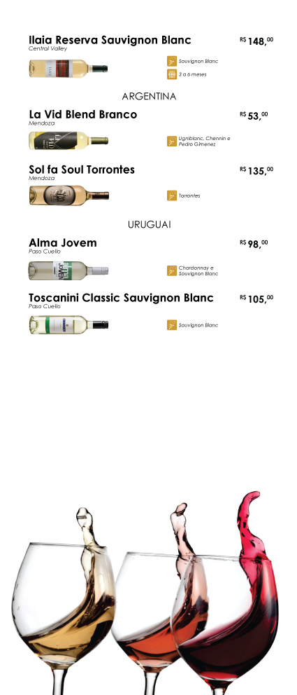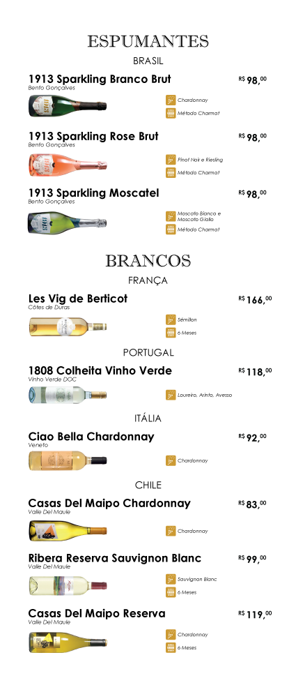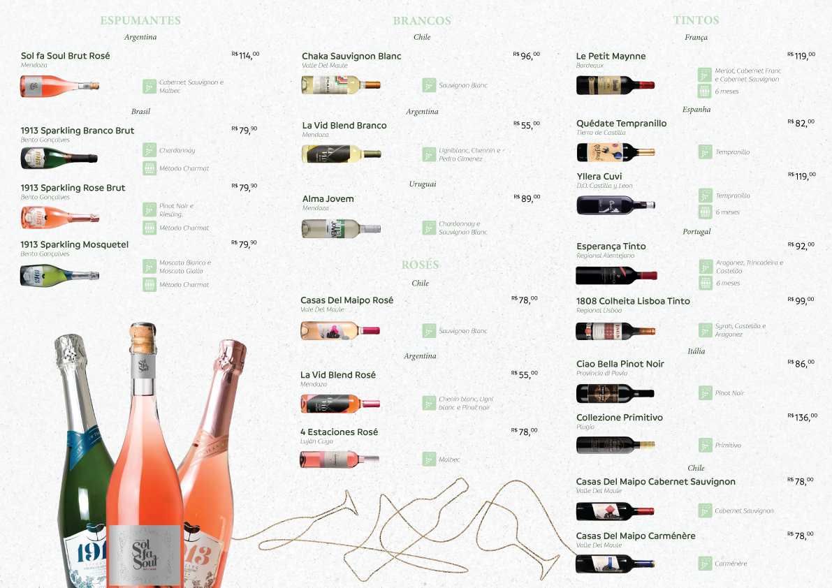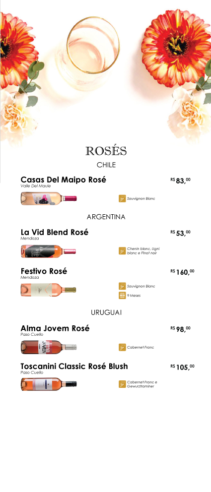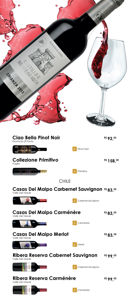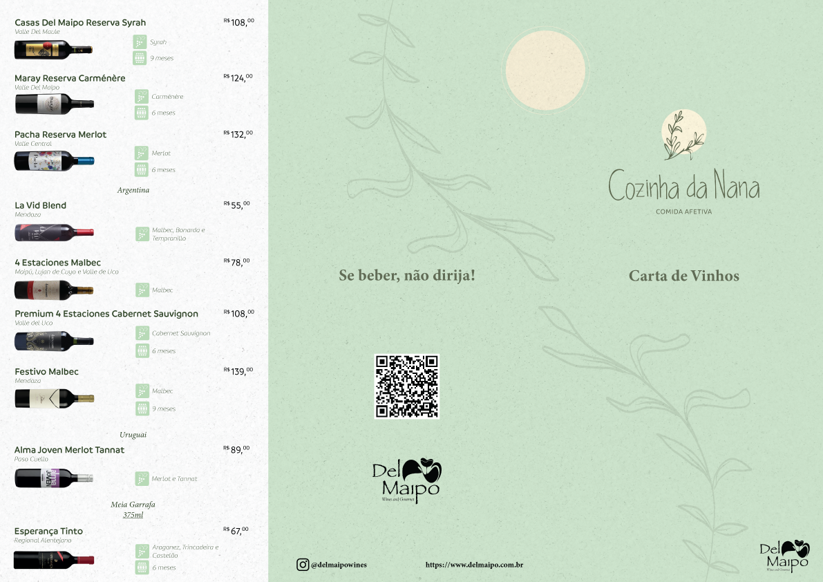 Cartas de Vinhos realizadas para os restaurantes atendidos pela Del Maipo